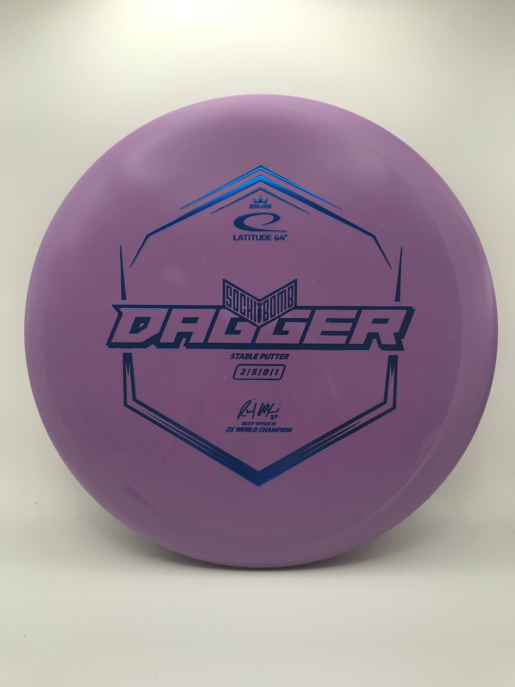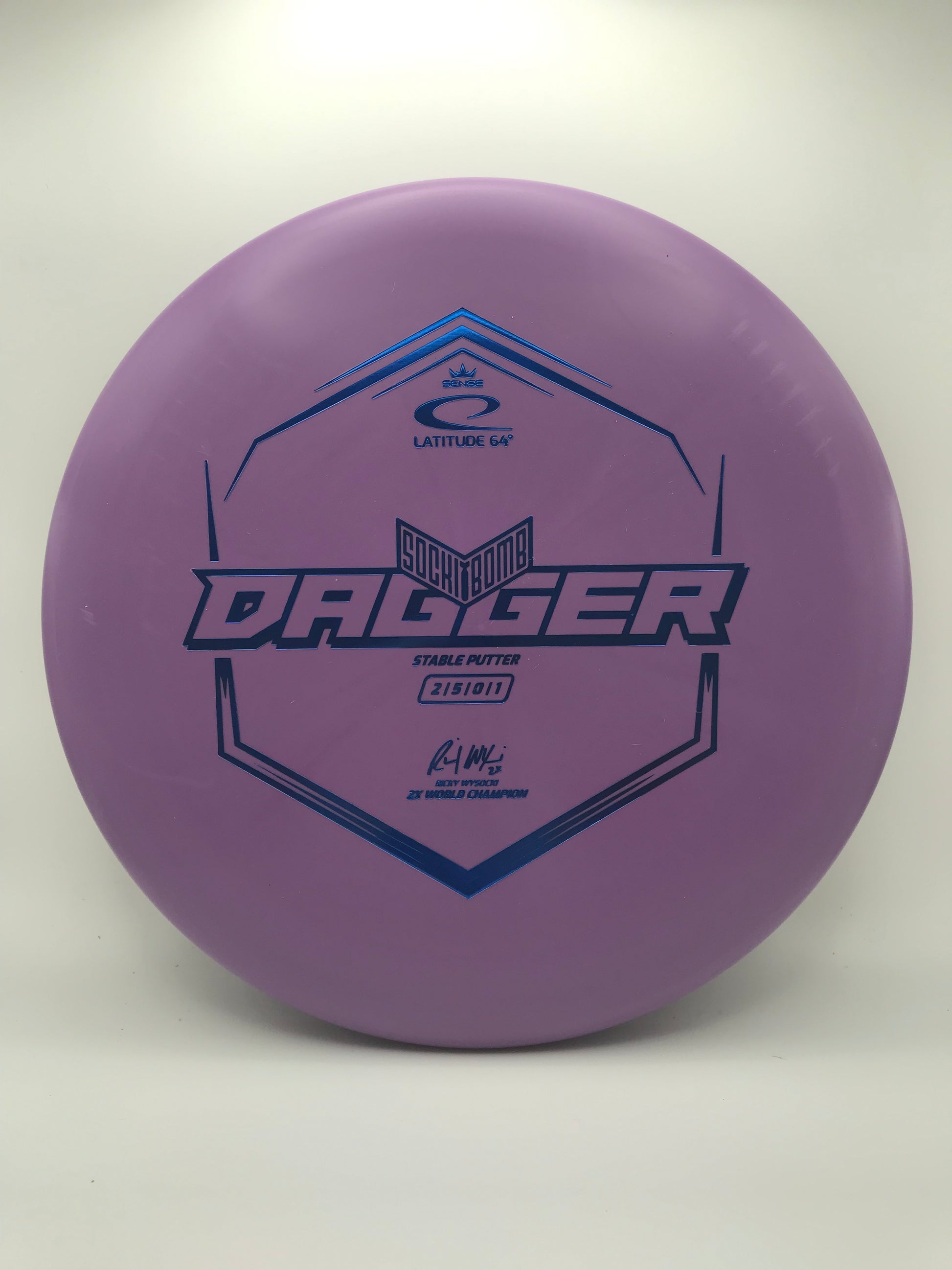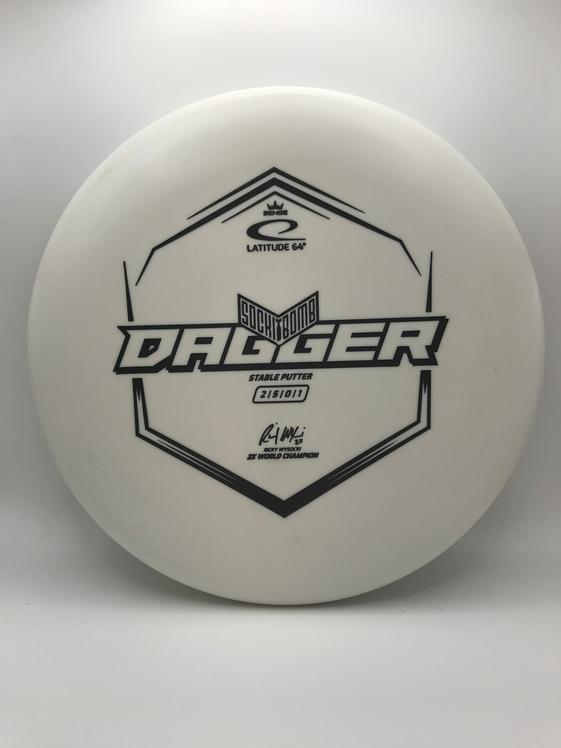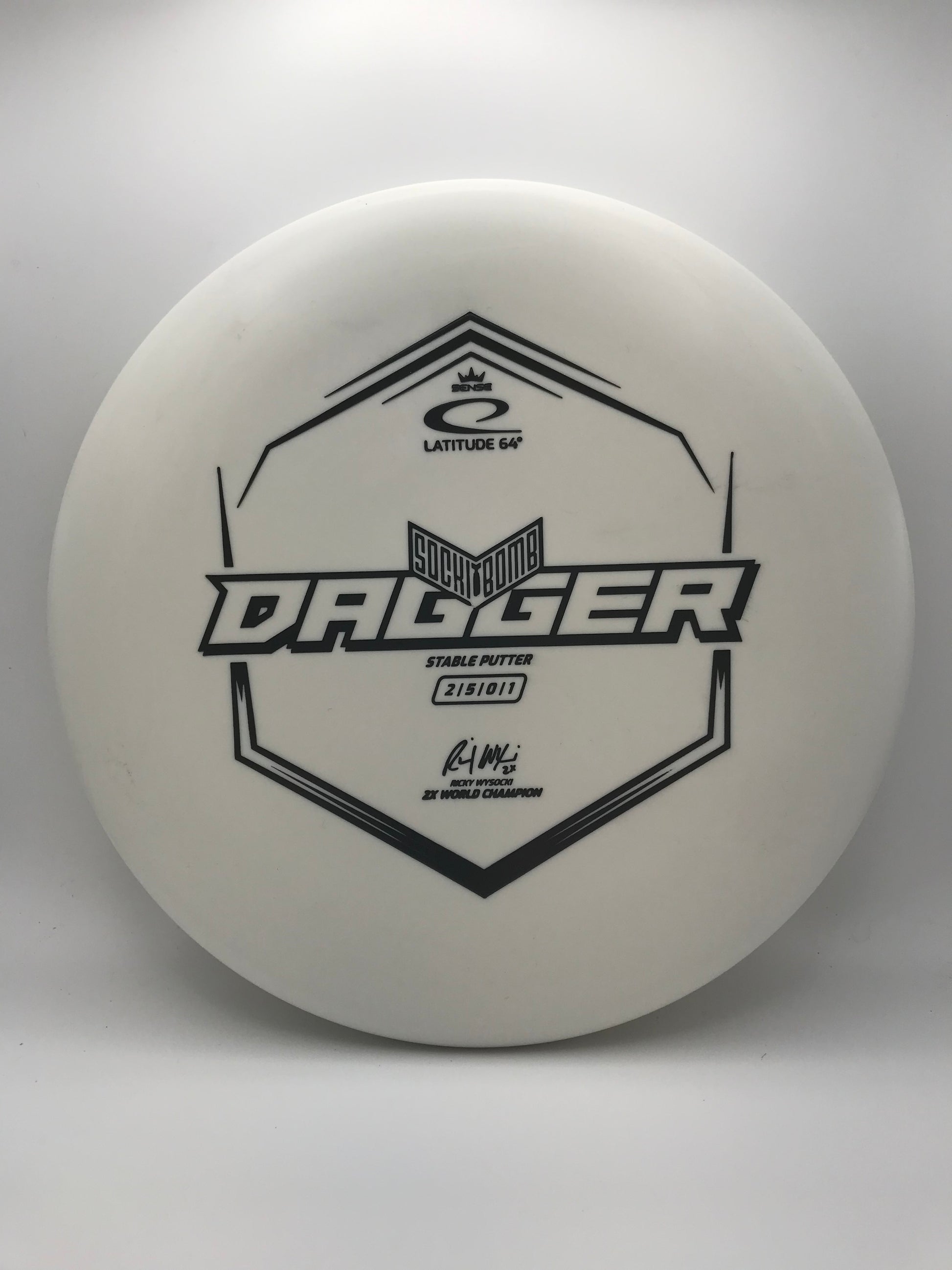 The Dagger is a deep dish putter with a bead. The deep dish means that more air can be trapped underneath the disc, making the Dagger stay longer in the air. The slow and stable flight gives you more control in your short game.