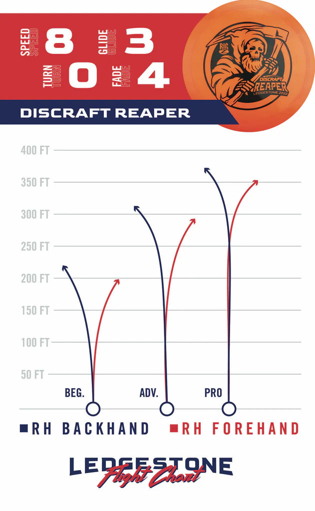 The Reaper is an out-of-production fairway driver with extreme overstability. Though not used for big distances, the Reaper’s predictable fade makes it perfect for accurate hyzer shots.