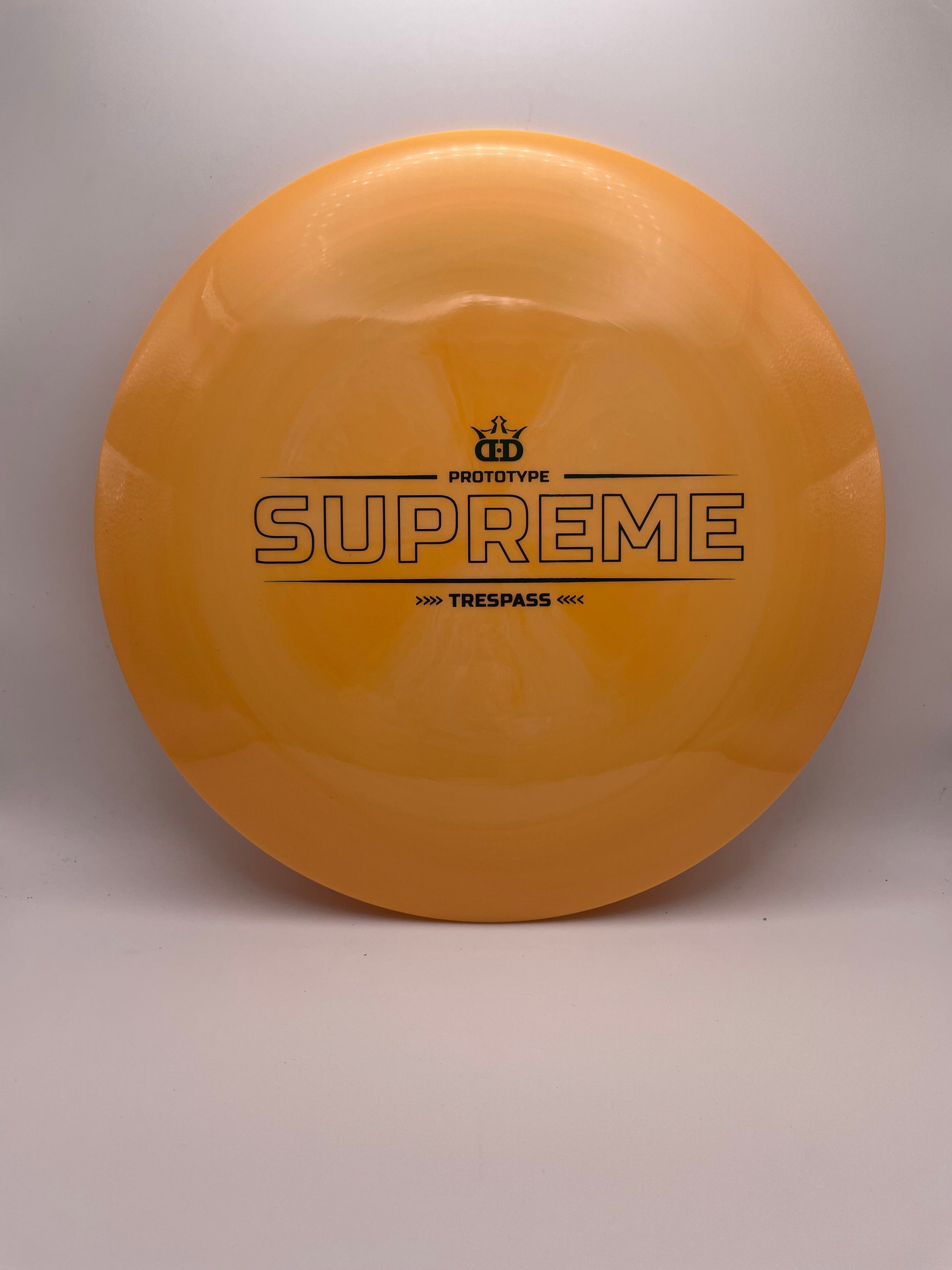 The Dynamic Discs Supreme Trespass is a top-of-the-line high-speed driver for disc golf enthusiasts. This disc incorporates the superior quality of the Supreme Series with the advanced NexEdge and NexFeel technologies from Latitude 64, resulting in a smooth, seamless feel on the bottom and outer parts of the rim. The Trespass is designed to have a balanced flight path, making it easy for players of all skill levels to control. With its wide rim, it can handle high power throws and glide effortlessly through the air, allowing you to conquer new distances and clear obstacles with ease. If you're looking for a premium disc golf disc that will elevate your game, the Supreme Trespass is a must-have.