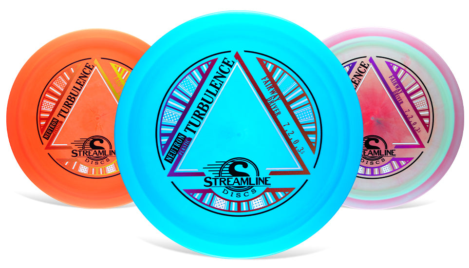 Debuting with flight numbers of 7 | 2 | 0 | 3.5, this disc is the newest brainchild from MVP’s R&D department. What if you could take the reduced glide and comfort that the concave top of the Range provides, but transport that into a fairway driver? The result of that mad science is here in the Turbulence! Designed with a purposefully concave flight plate, the Turbulence feels amazing in the hand–resulting in extremely clean and torque-resistant releases for both forehand and backhand throws. The unique design also leads itself to less glide, increased nose angle forgiveness for spike hyzers, and a muted skip–resulting in an extremely comfortable fairway driver that excels in all aspects of controlled fairway driver shots.